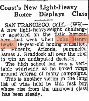 Although this next fighter is not from Arizona, it is worth the mention that Lewis and Louis both were fighters. He was born May 14th,1914,the same month as John Henry Lewis.